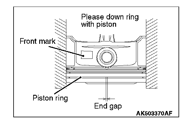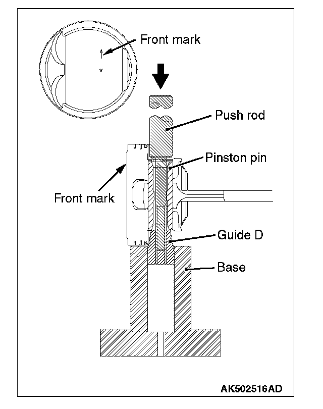 1. Insert the push rod into the piston pin from the front mark side of the piston top surface, and attach special tool MB991659.