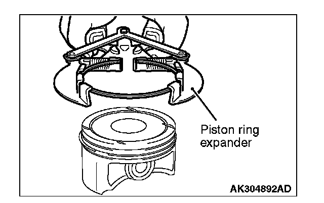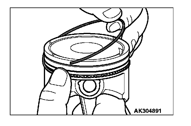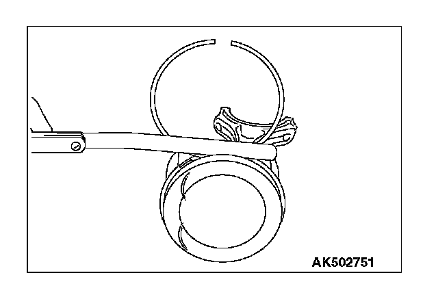 1. Assemble the spacer of the oil ring into the piston ring groove. Then, assemble the upper side rail, and after this assemble the lower side rail.