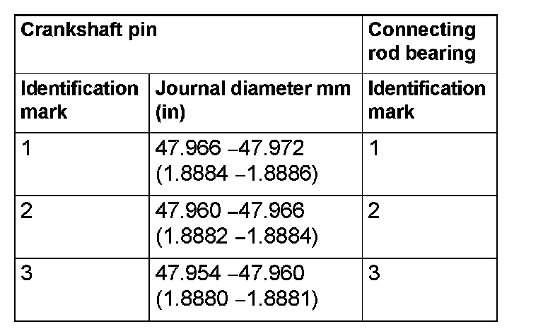 1. When replacing a connecting rod bearing, select the bearing corresponding to the crankshaft pin outside diameter according to the crankshaft pin identification in the table below.