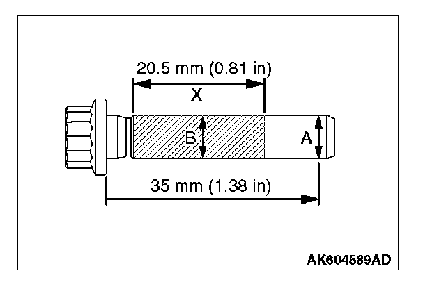 3) If the difference of outside diameter of thread exceeds the limit, replace the connecting rod bolt.