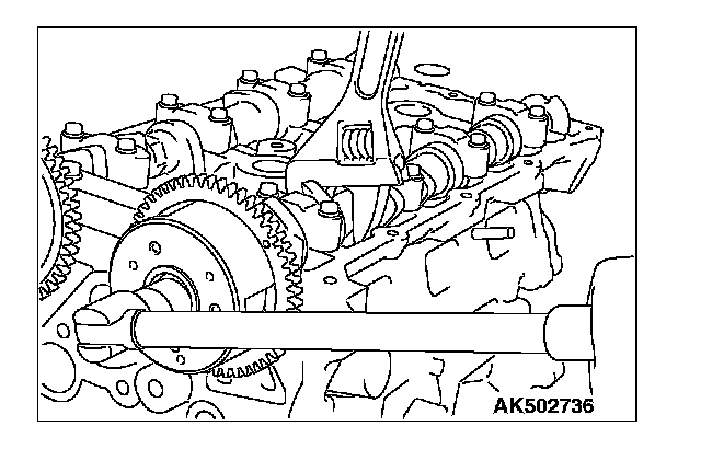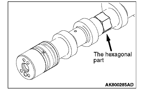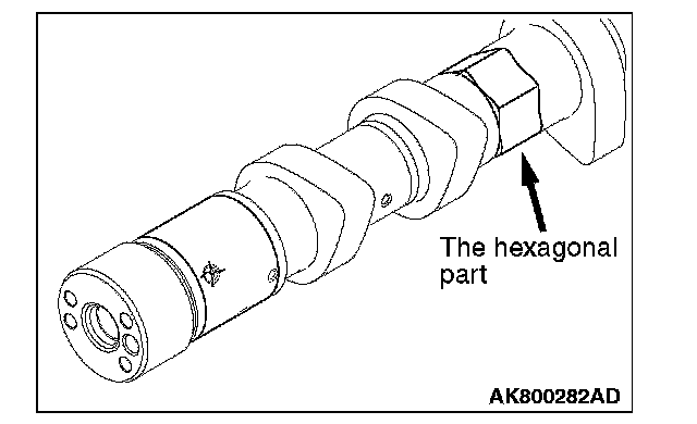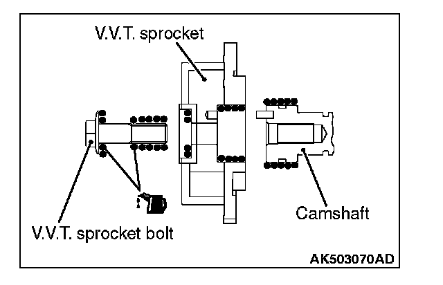 3. Make sure that the V.V.T. sprocket is securely inserted into the bottom and that the V.V.T. sprocket does not rotate with the hexagonal portion of the camshaft secured with a wrench.