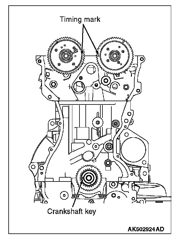 2. Align the crankshaft sprocket keys with illustrated positions.