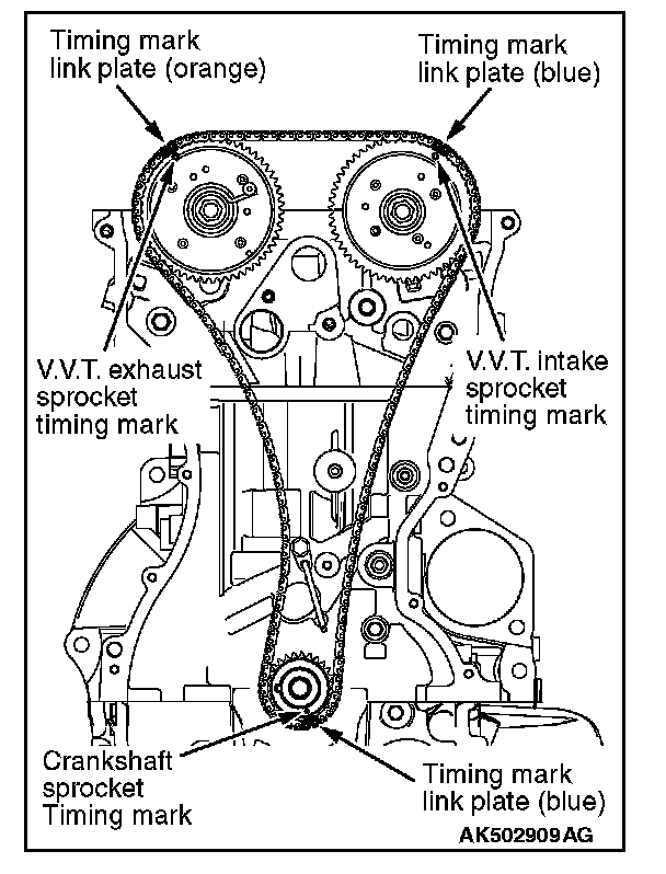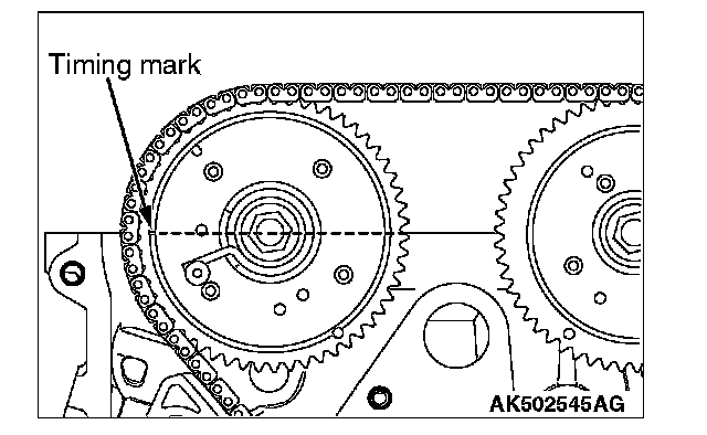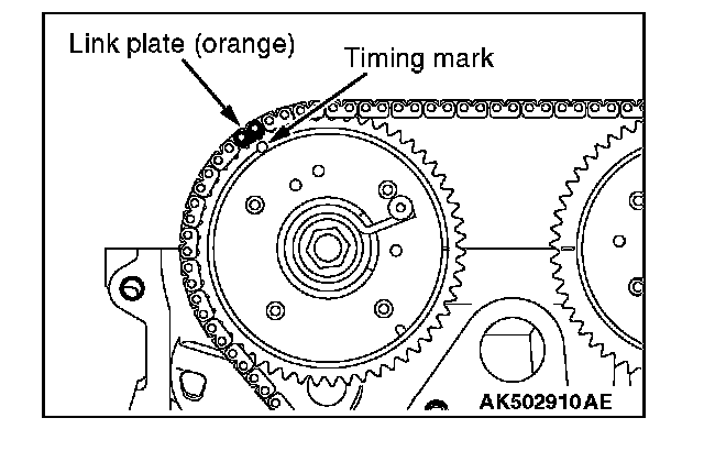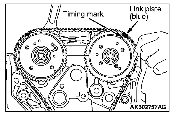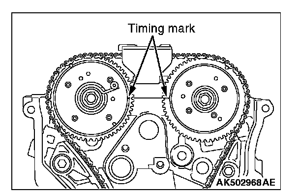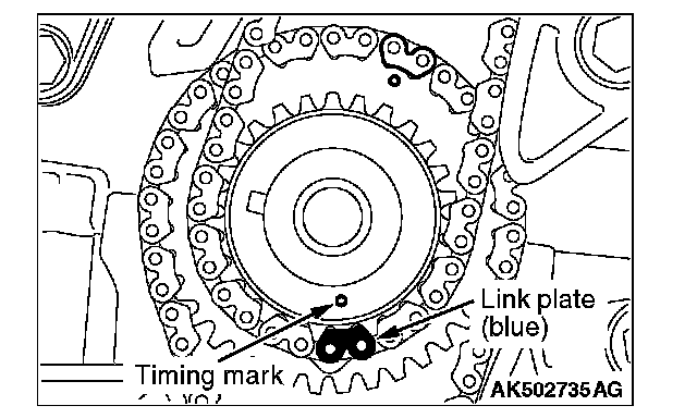 6. Make sure that the timing mark of each sprocket is aligned with the link plate of the timing chain at all of three locations.