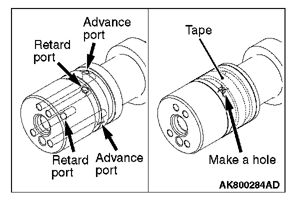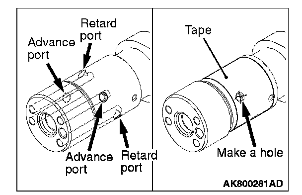 1. Seal with a tape all the intake camshaft ports for the advanced angle and the retarded angle.