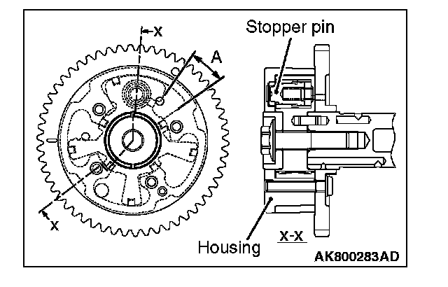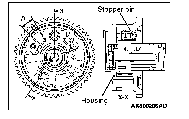NOTE: The stopper pin is locked in the most retarded angle position.