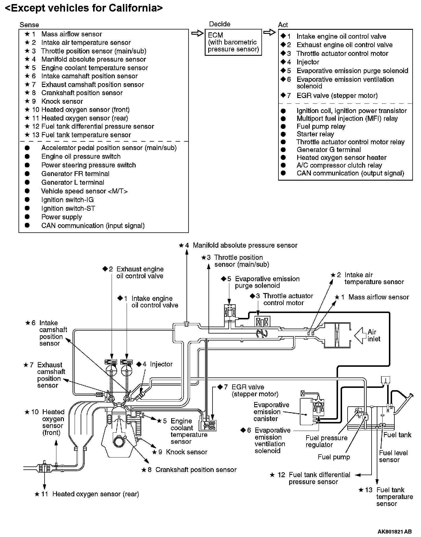 - The RAM data inside the ECM that is related to the sensors and actuators can be read with the scan tool. In addition, the actuators can be controlled by scan tool MB991958 (M.U.T.-III sub assembly) under certain circumstances.