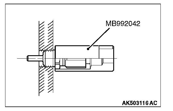 1. Drain engine coolant, then remove the engine coolant temperature sensor using the special tool MB992042 (engine coolant temperature sensor wrench).