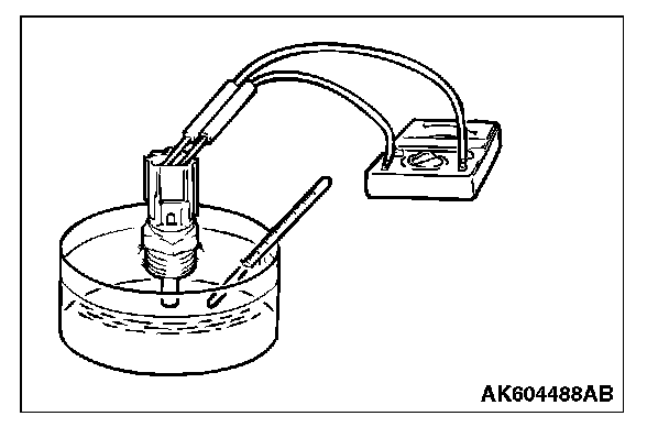 2. With the temperature sensing portion of engine coolant temperature sensor immersed in hot water, check the resistance.