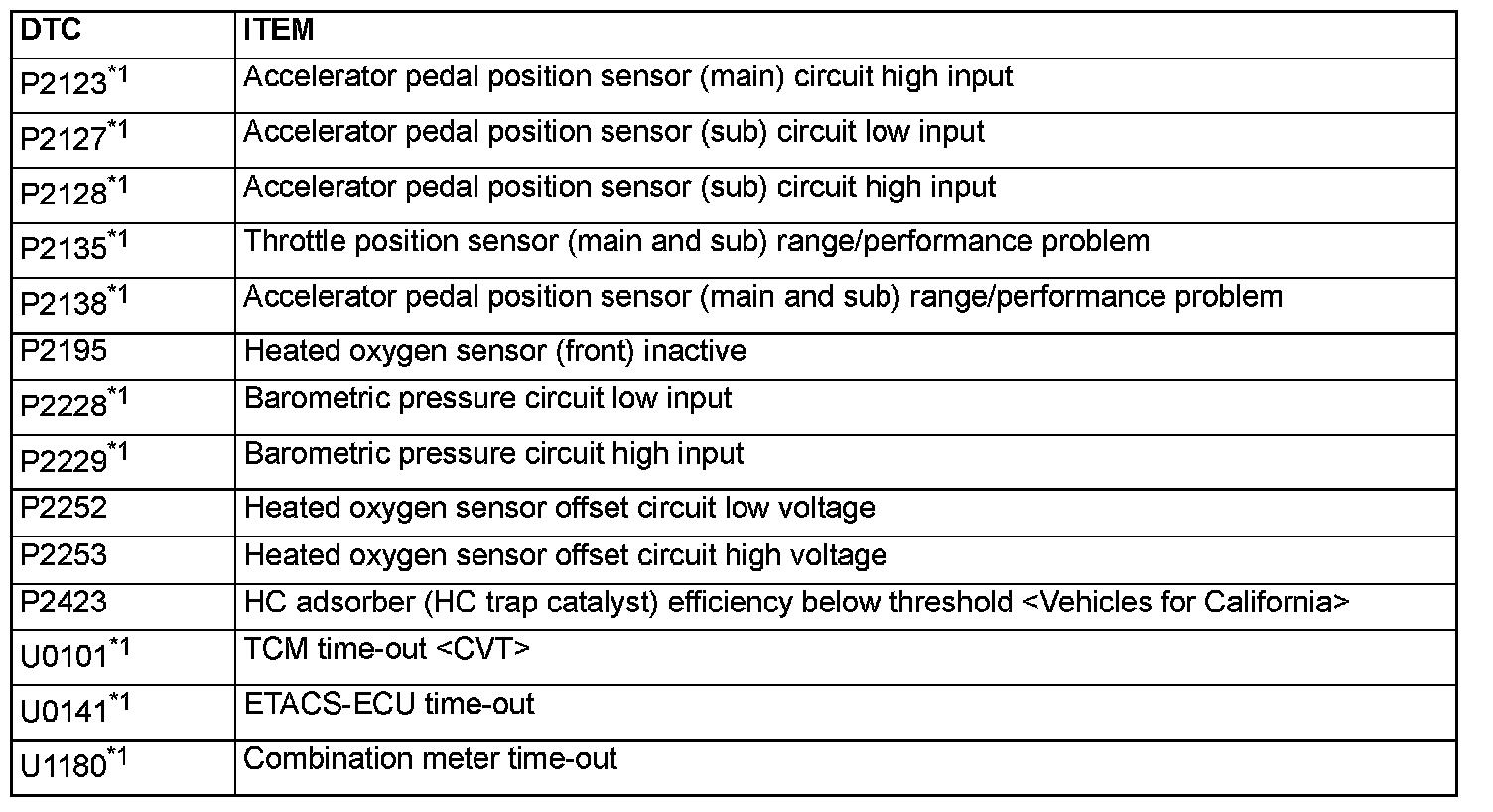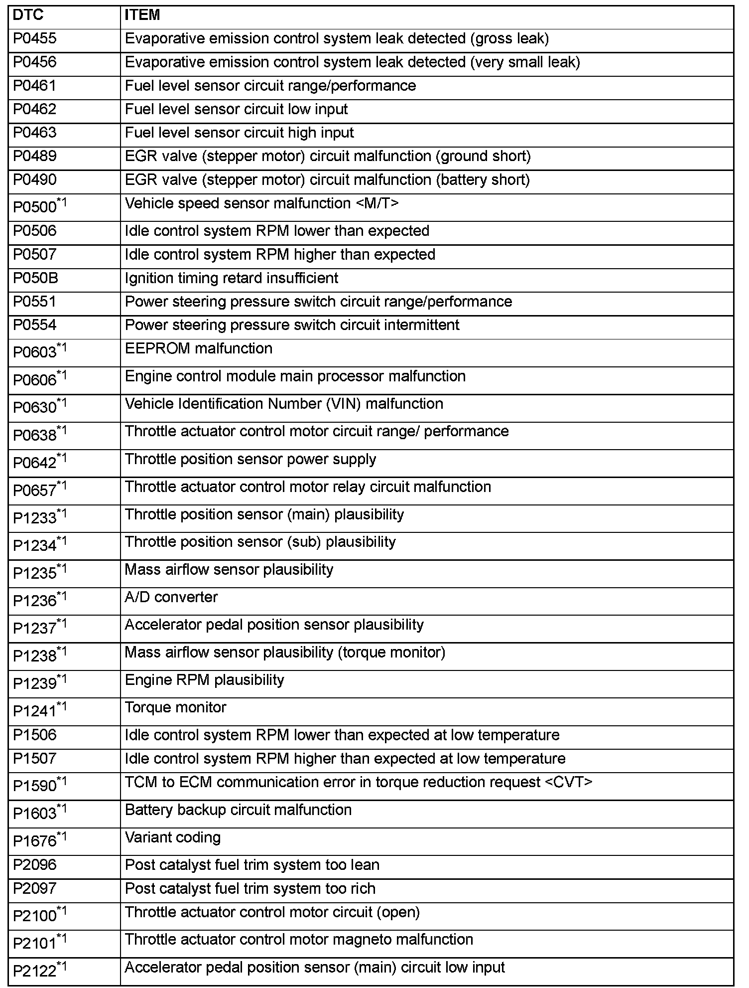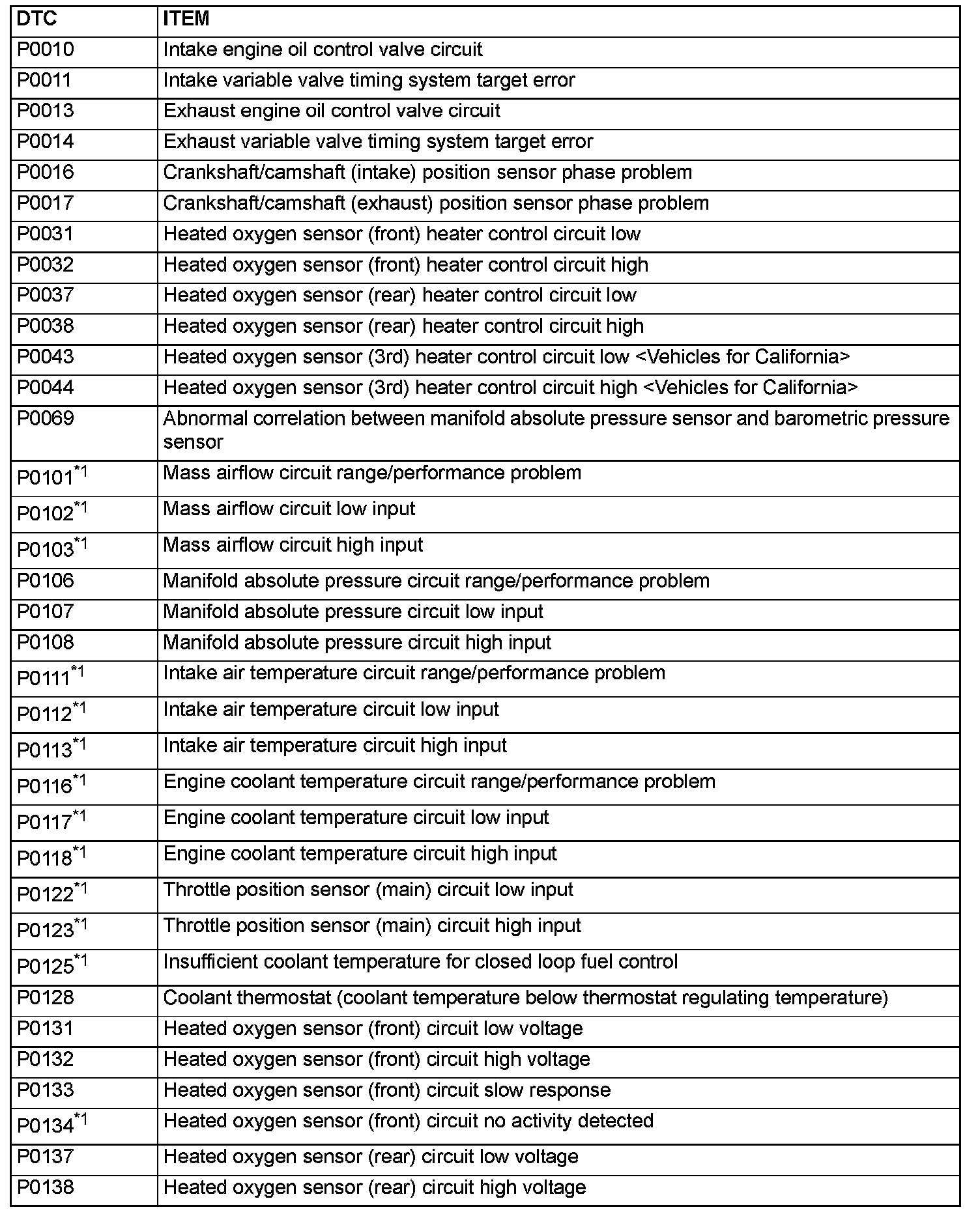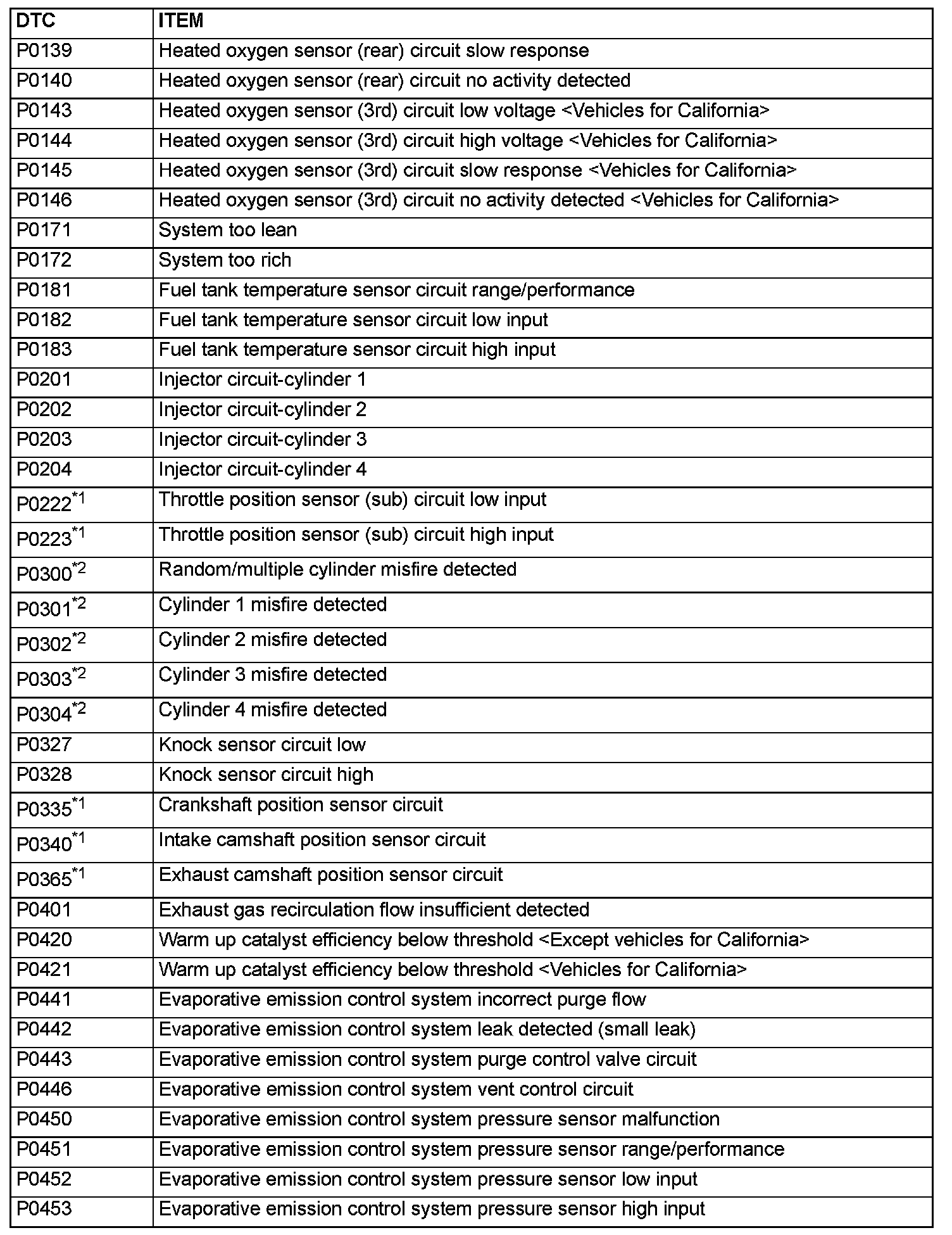 - The codes marked with a "*2" in the diagnosis code number column have the following two conditions for illuminating the Malfunction Indicator Lamp (SERVICE ENGINE SOON or Check Engine Lamp).