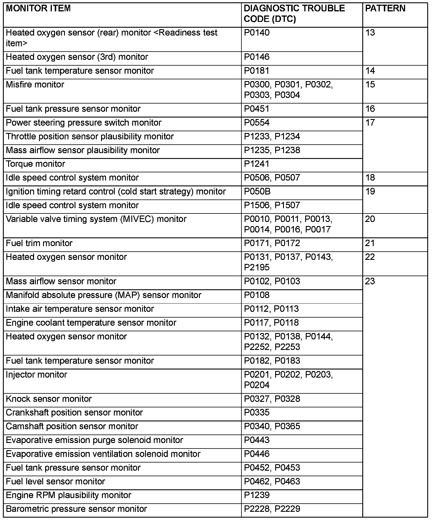 - Drive cycle patterns are not established for Vehicle speed sensor monitor (DTC P0500), Power steering pressure switch monitor (P0551), and Fuel level sensor monitor (DTC P0461). Please reference the M.U.T. data list to judge whether these monitor items are normal.