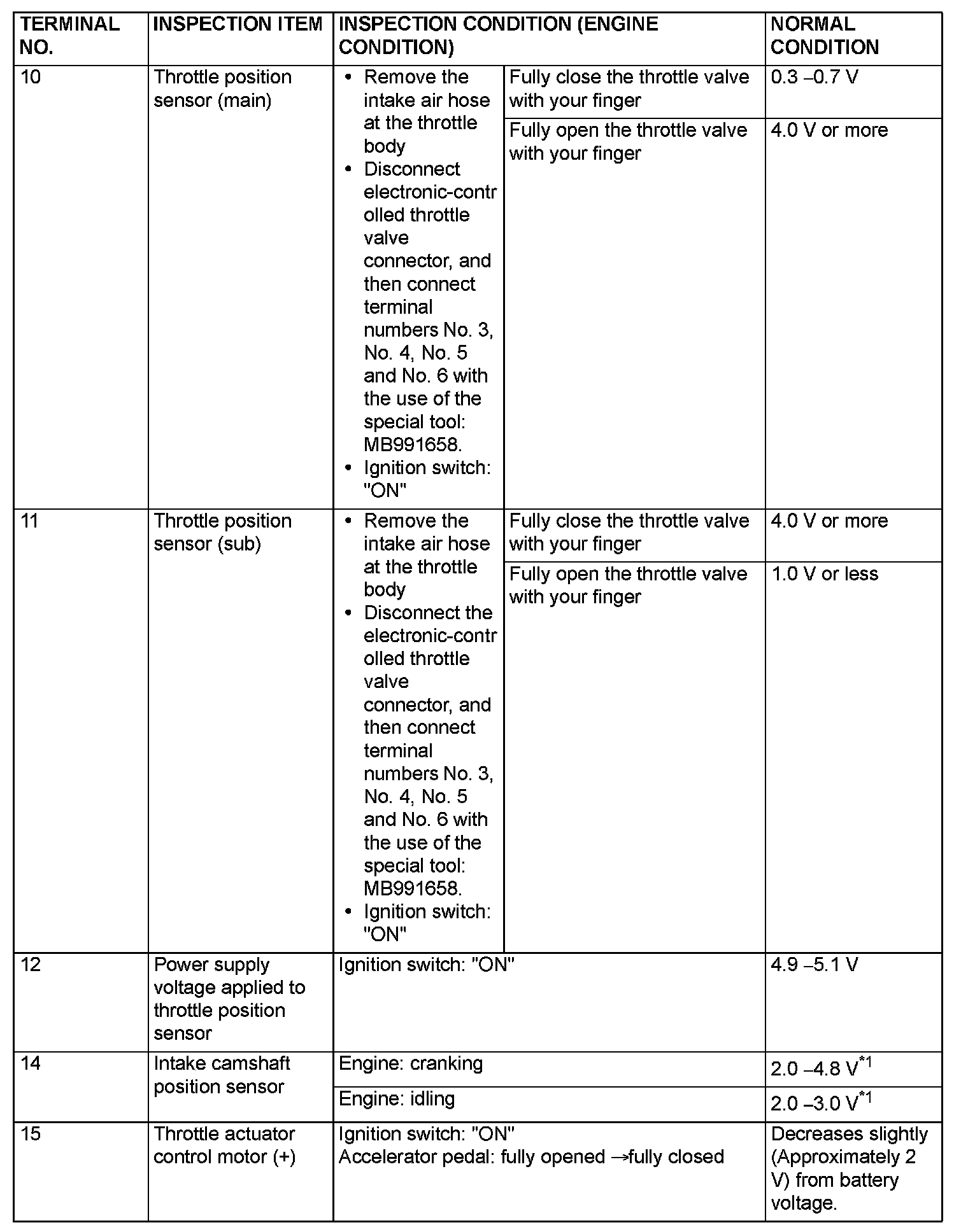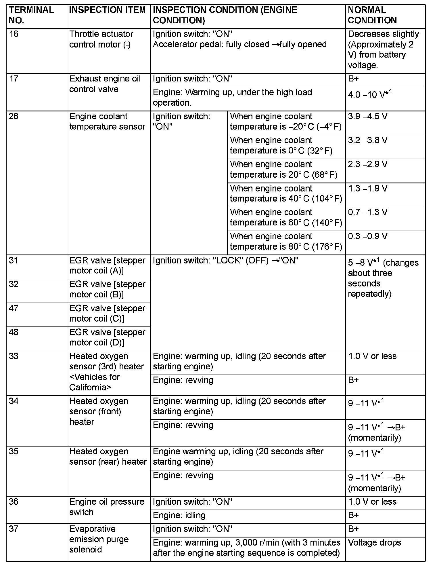 Terminal Voltage Check Chart (Part 1):