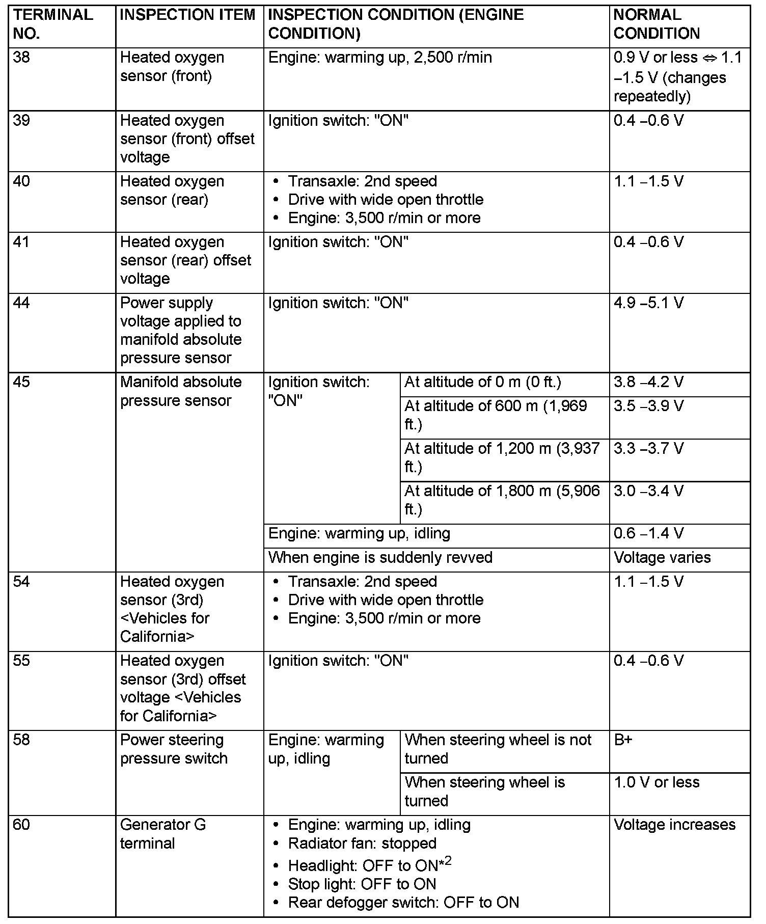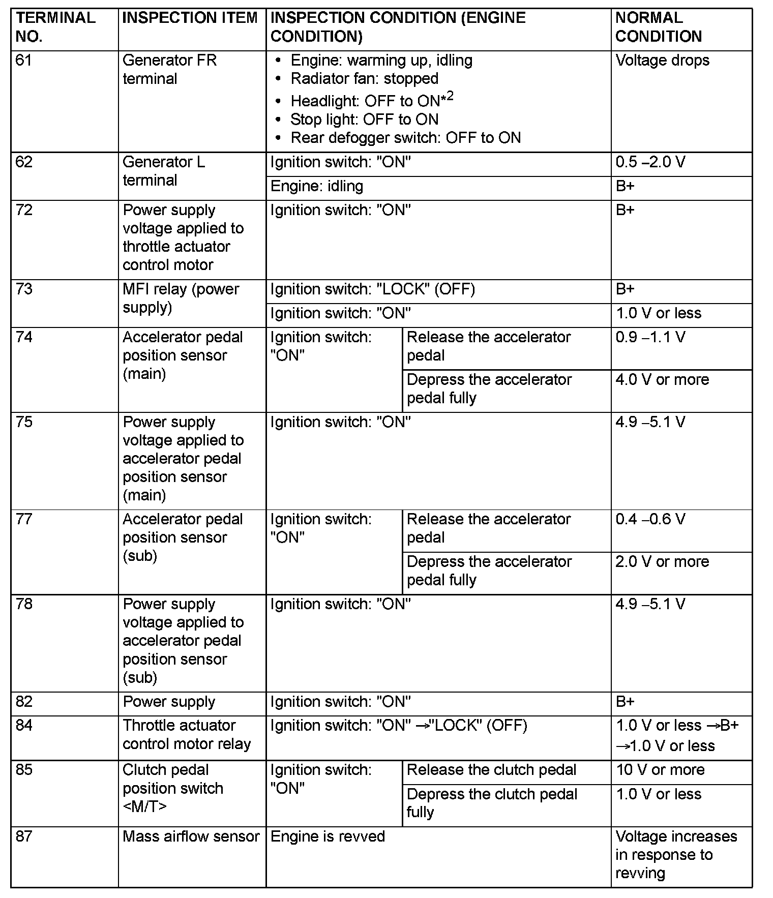 Terminal Voltage Check Chart (Part 2):