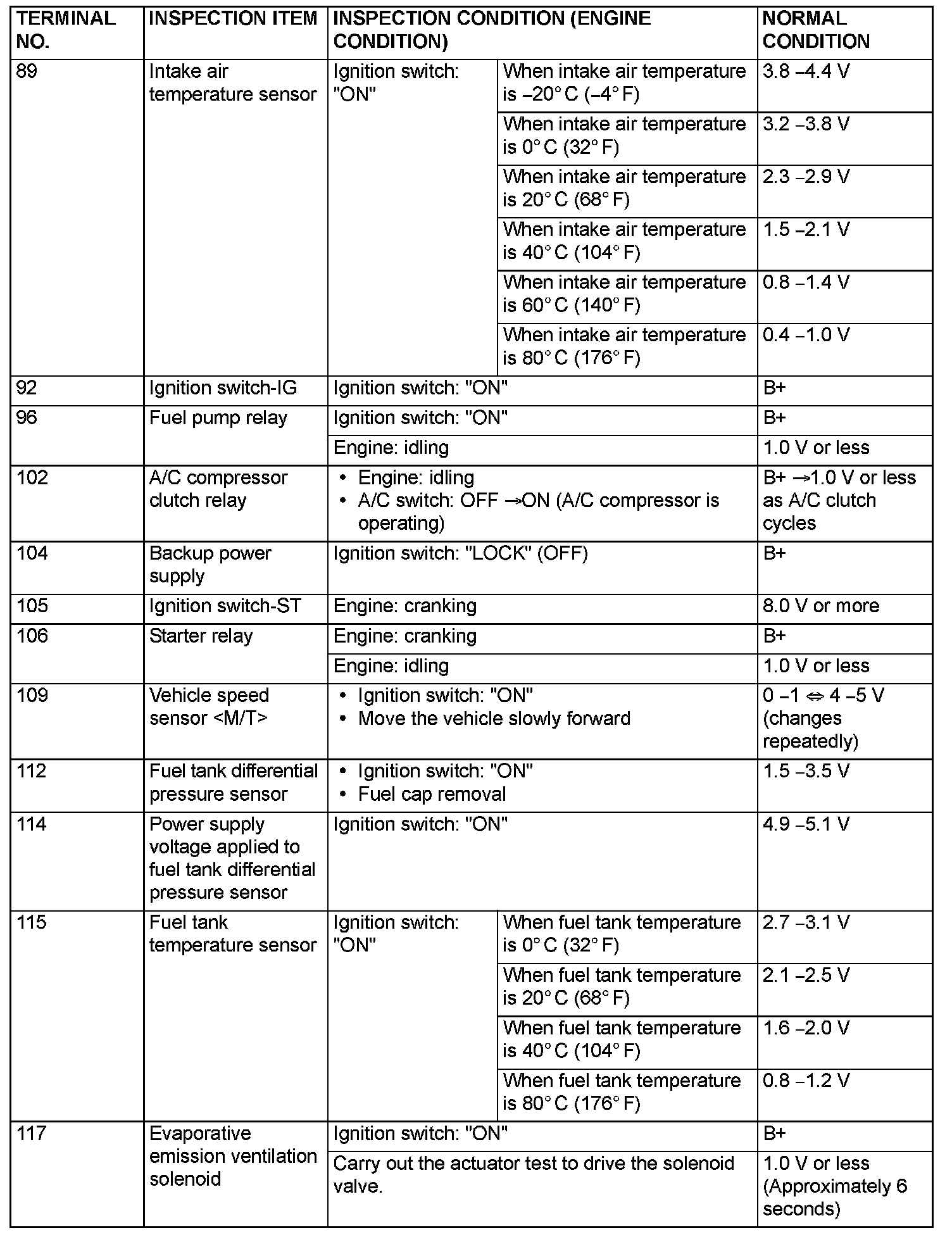 Terminal Voltage Check Chart (Part 5):