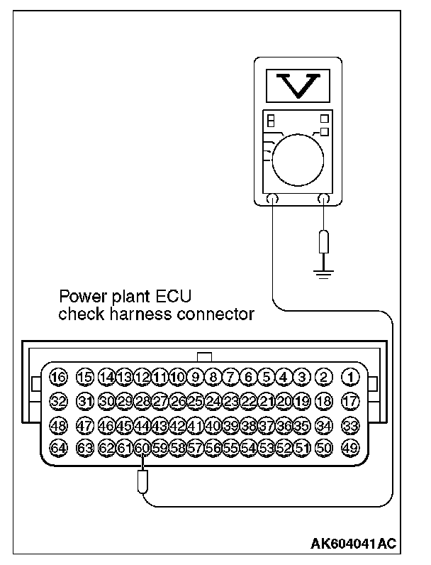 STEP 2. Measure the output voltage at ECM connector B-108 by using power plant ECU check harness special tool MB992110.