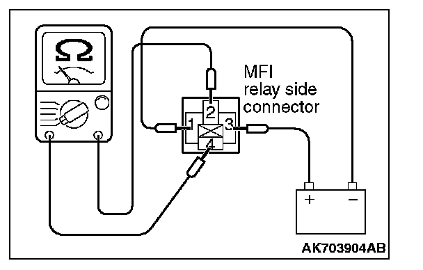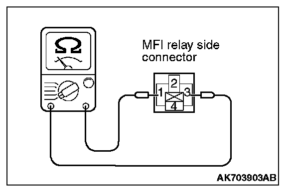 2. Check for continuity between the MFI relay terminals No. 1 and No. 3.