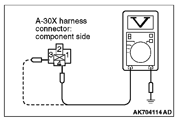 STEP 3. Measure the power supply voltage at MFI relay harness side connector A-30X.