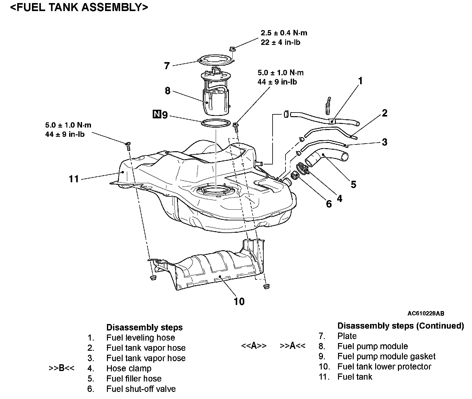 FUEL TANK [2.4L ENGINE]DISASSEMBLY AND ASSEMBLY