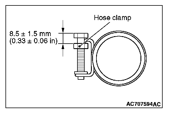 Connect the fuel filler hose, and tighten the bolt of hose clamp so that the bolt tightening dimension of the hose clump becomes 8.5 ± 1.5 mm (0.33 ± 0.06 inch.)