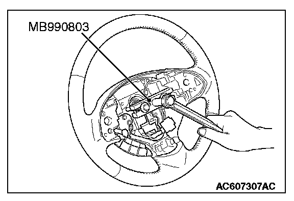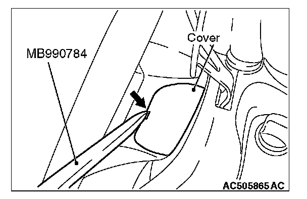 Insert Special tool MB990784 into the notch shown in the figure, and remove the cover.