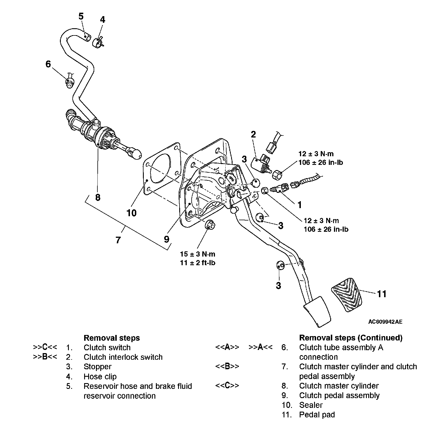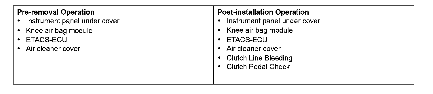[B] CLUTCH MASTER CYLINDER AND CLUTCH PEDAL ASSEMBLY REMOVAL