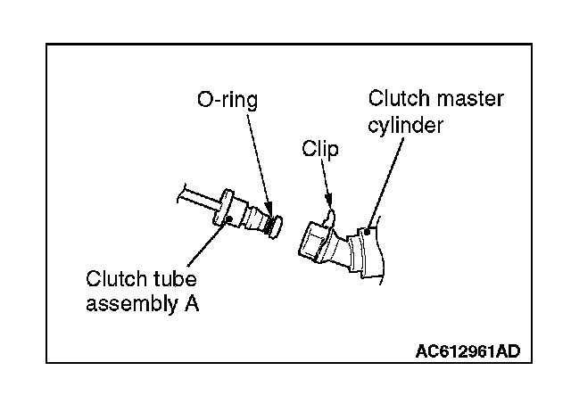 ^ If the O-rings or the clips of the clutch tube assembly A and the clutch master cylinder are damaged, replace each assembly.