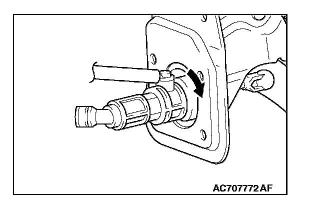 Pull out the clutch master cylinder by turning the cylinder 45 degrees to the direction of the arrow shown in the figure.