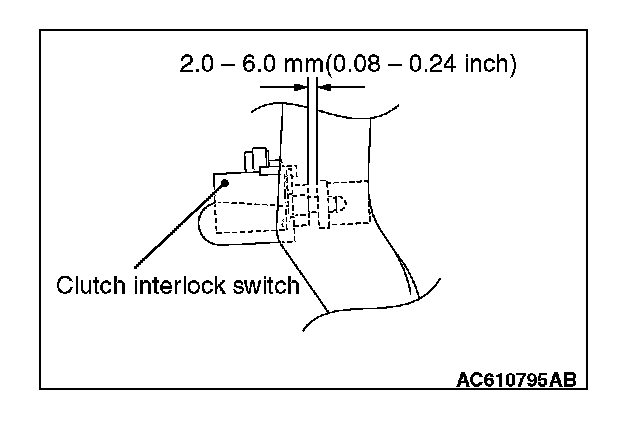 Install the clutch interlock switch at the specified dimension when the clutch pedal is depressed.
