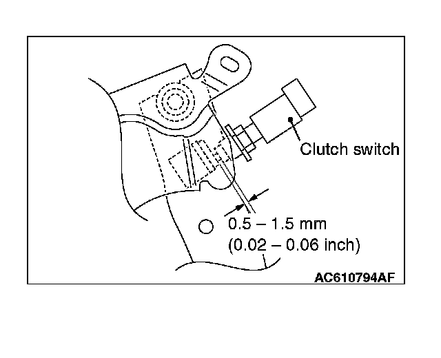 Install the clutch switch at the specified dimension when the clutch pedal is released.