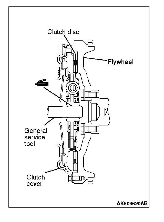 2. Use the general service tool to position the clutch disc on the flywheel.