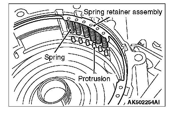 2. Align the spring portion of spring retainer assembly with the projections of the reverse brake piston, and install the spring retainer assembly.