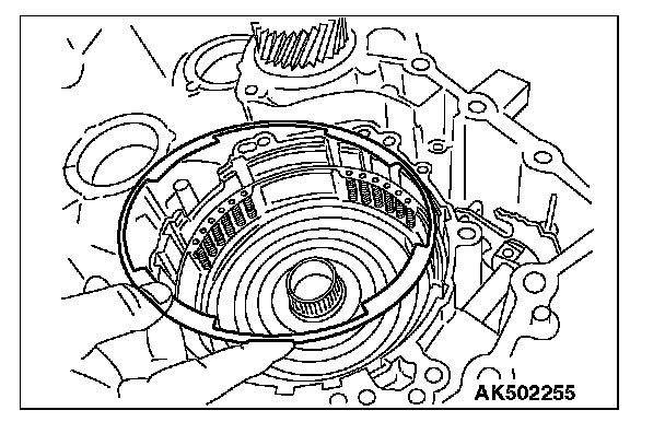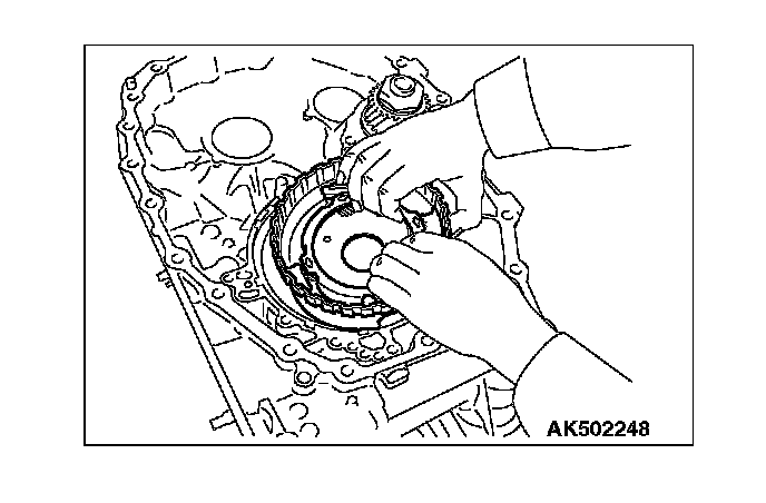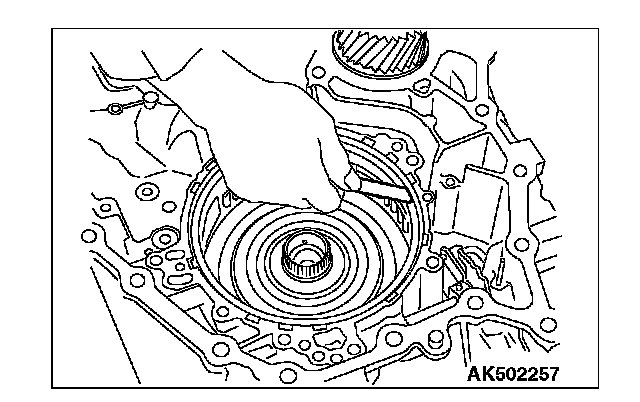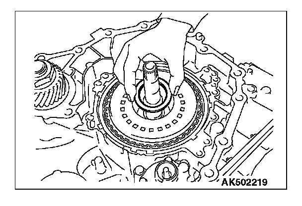 1. Install the reverse brake piston, while turning it, on the transaxle case.