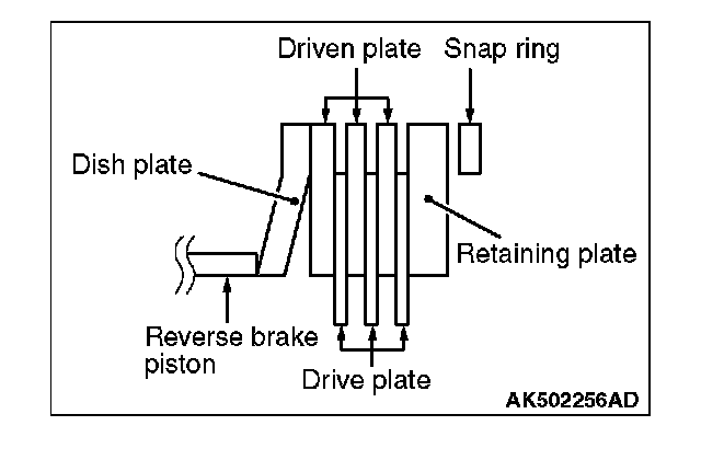 5. Install the reverse brake retaining plate, drive plate, driven plate, and dish plate on the transaxle case.