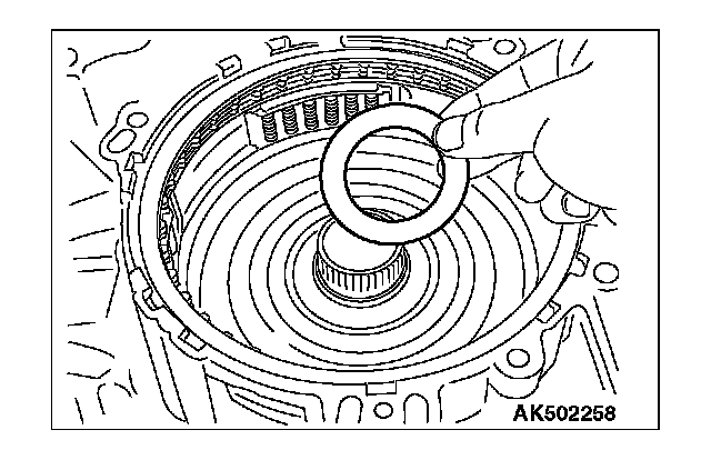 6. Using a flat blade screwdriver etc., install the snap-ring on the transaxle case, and measure clearance between the snap ring and retaining plate. Select the snap ring so as to obtain standard value of the clearance. For selection of the snap ring, refer to "SERVICE SPECIFICATIONS."