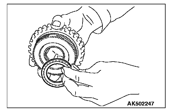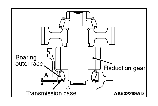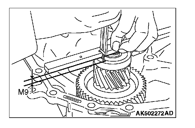 3) Install the outer race of reduction gear side bearing on the bearing, and measure the distance M9 from the edge of reduction gear assembly to the outer race of reduction gear bearing.