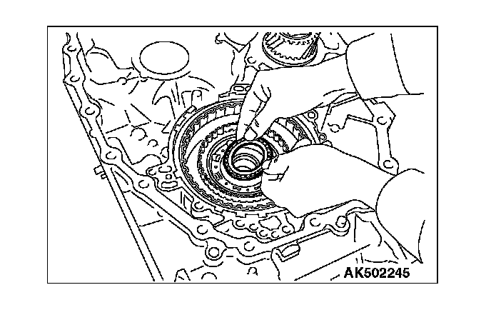 11. Install the needle bearing on the forward clutch drum side of the sun gear. Refer to C in the "IDENTIFICATION OF NEEDLE BEARINGS" for right direction.
