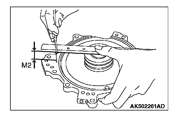 2) Measure the distance M2 from the edge of oil pump cover to the mounting surface on the transaxle case.