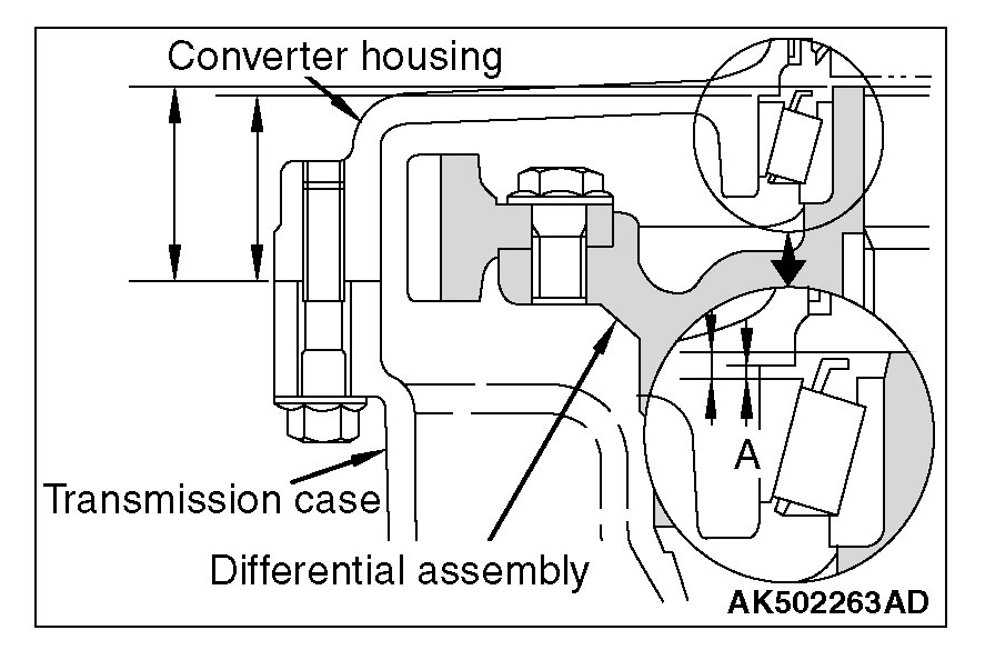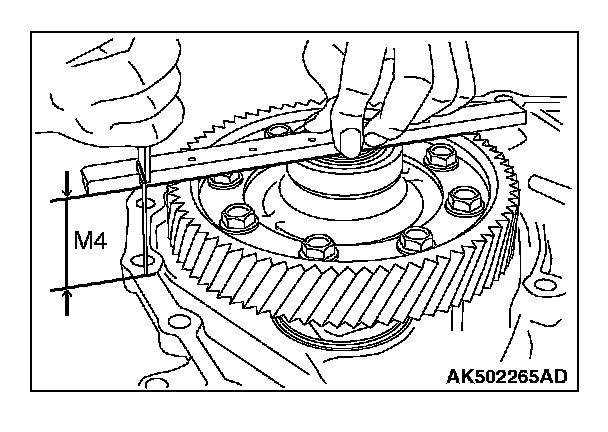 2) Install the differential assembly on the converter housing, and measure the distance M4 from the differential case to the edge of converter housing.
