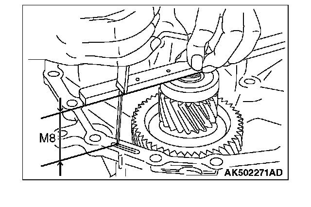 2) Install the reduction gear assembly on the converter housing, and measure the distance M8 from the edge of reduction gear assembly to the edge of converter housing.