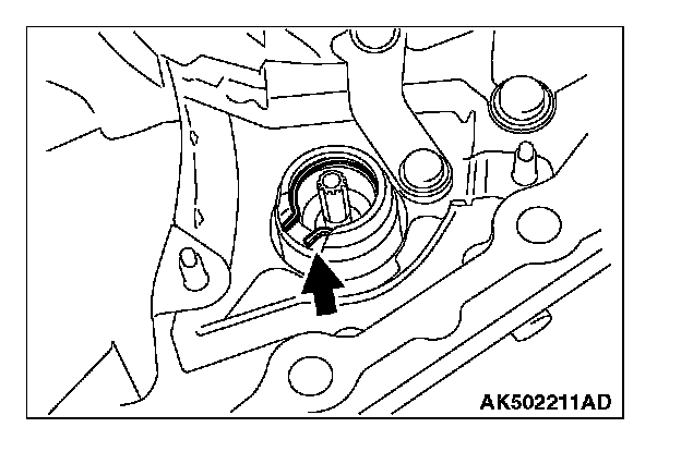 4. Using the special tool MB992139, compress the return spring, and install the snap ring on the transaxle case by means of a flat blade screwdriver etc.