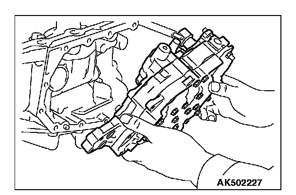3) Slide the control valve assembly from the bottom, and install it on the transaxle case.