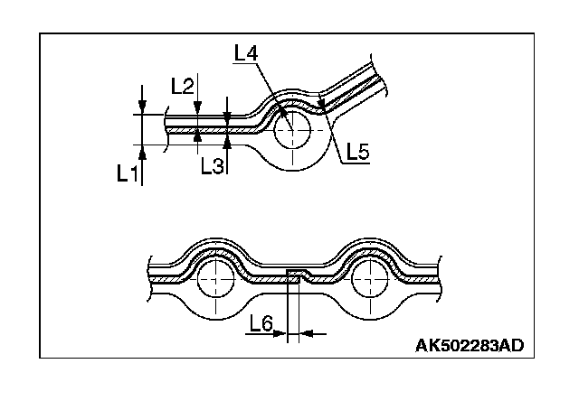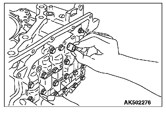 ^ Remove any moisture, oil, and used gasket from the mounting surface of oil pan gasket.