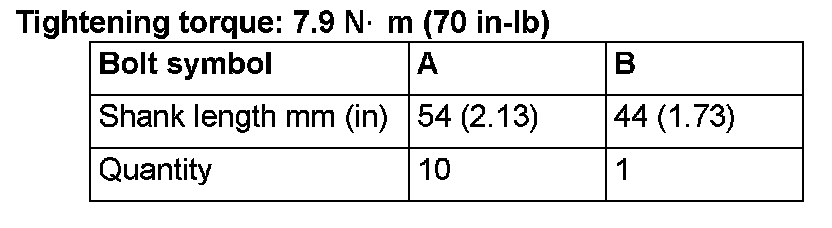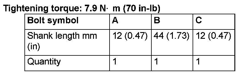 Tightening torque: 8.5 ± 3.5 Nm (75 ± 31 in-lb)