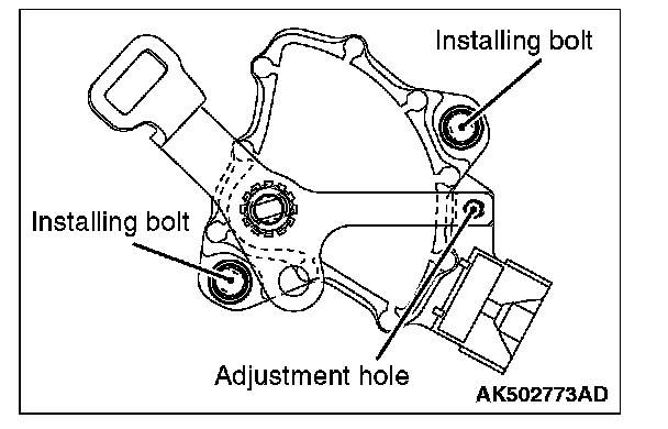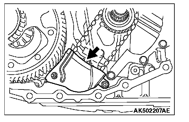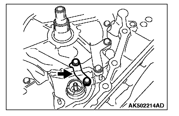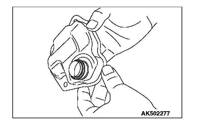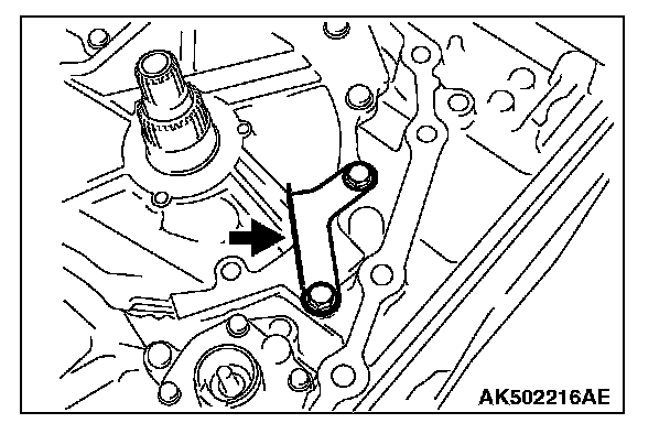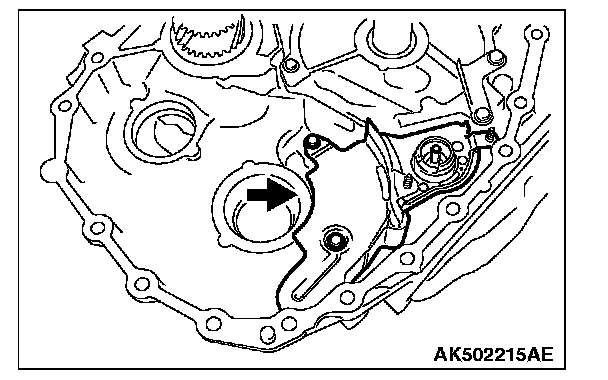 ^ Make sure the tang of thrust washer is aligned with the mounting hole of oil pump cover.