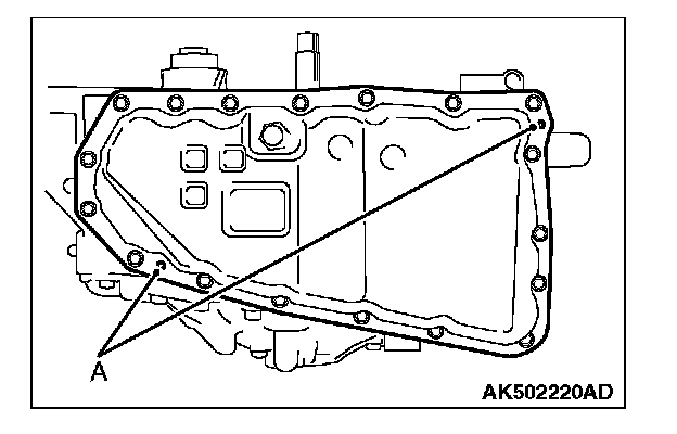 When installing the oil pan, align the dowel pins of transaxle case with dowel pin holes A of the oil pan.