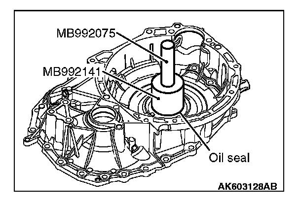 54. Using the special tools MB992141 and MB992075, install the converter housing oil seal on the converter housing.