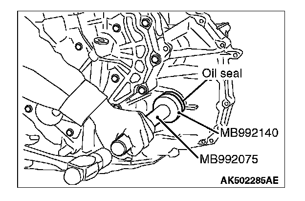 59. Using the special tools MB992140 and MB992075, install the side oil seal on the transaxle case.