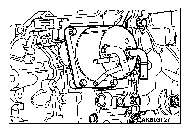 67. Install the transmission fluid cooler on the transaxle case, and tighten the fastening bolts to the specified torque.