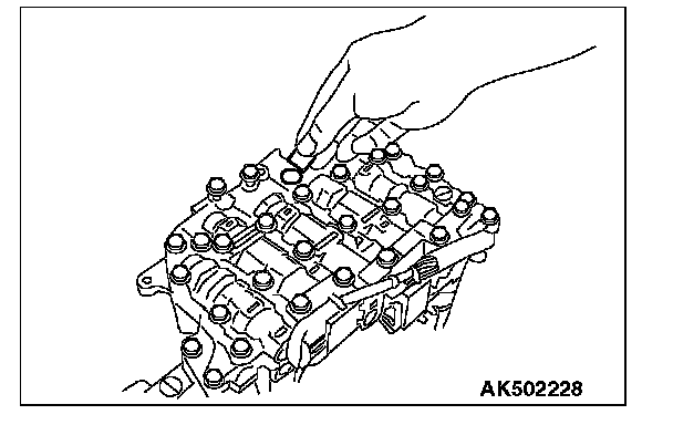 NOTE: Tilt the control valve assembly, and after removing from the manual shaft side, remove the terminal body from the transaxle case.
