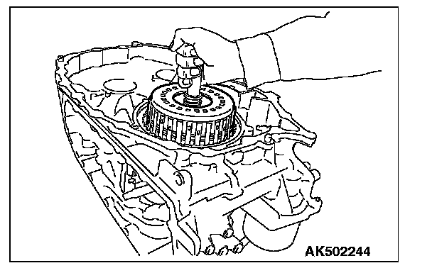 70. Feed the air in the oil hole shown in the diagram, and remove the reverse brake piston from the transaxle case.