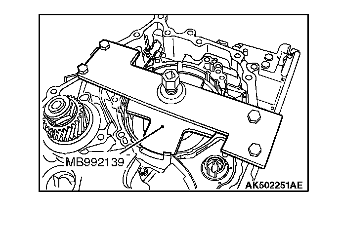 68. Using the special tool MB992139, compress the return spring, and remove the snap ring from the transaxle case.